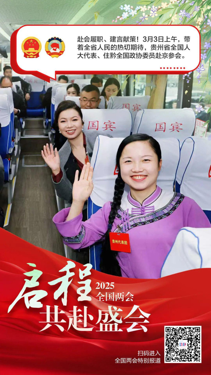 共赴春天的盛会!今天(3月3日)上午,怀揣着全省人民的热切期盼,赴京出席十四届全国人大三次会议、全国政协十四届三次会议的贵州省全国人大代表和住黔全国政协委员,从驻地启程,他们将在贵阳龙洞堡机场登机,前往北京向大会报到。